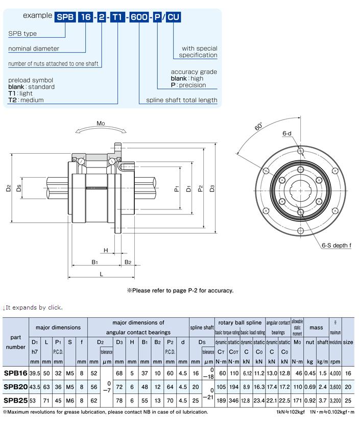 STRUCTURE AND ADVANTAGESThe NB ROTARY BALL SPLINE SPB type combines a spline nut and a set of angular contact bearings in a compact, high accurate, and high-speed rotation-capable assembly, providing both linear and rotational motion at the same time.